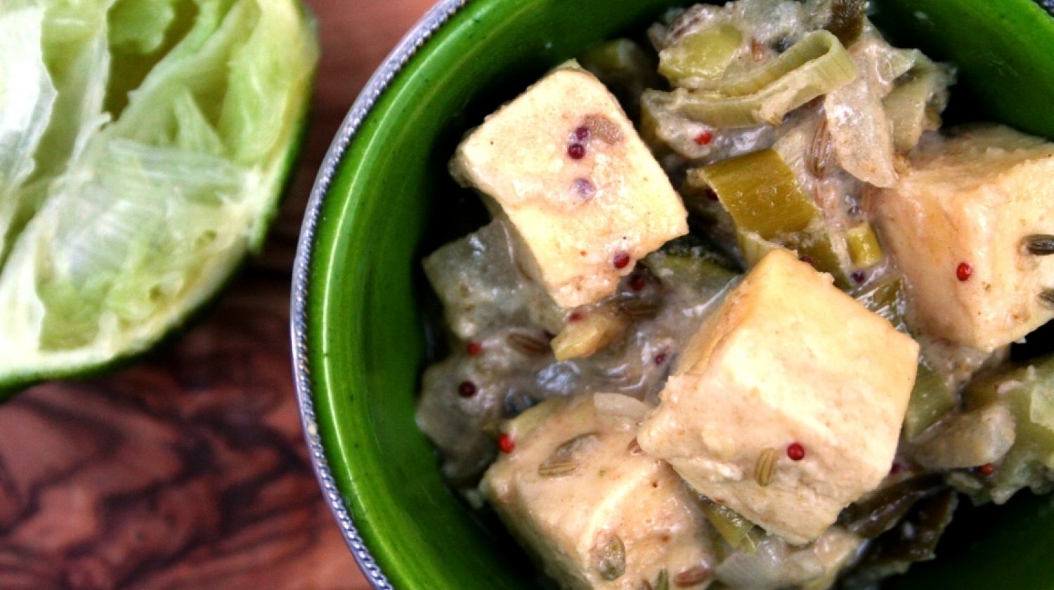 Using a wok or large skillet, heat the oil and over a medium temperature soften the leek, onion and spring onions for 4-5 minutes. Add the garlic and ginger paste and chillies and fry for a couple of minutes until the pan yields its’ aroma. Tip in the mustard, cumin and fennel seeds and sauté for 3-4 minutes, now add the paneer and cook for 5 minutes. If the mix is sticking add a little water to loosen the pan and add a dash of salt. Pour in the coconut milk and turn down the heat to low, cooking for a further 10 minutes, until the milk has thickened a little and the sauce is hugging the ingredients. Just before serving squeeze in the lime and stir.